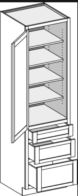 TALL PANTRY WITH 3 DRAWERS, TWO DOORS-24X90